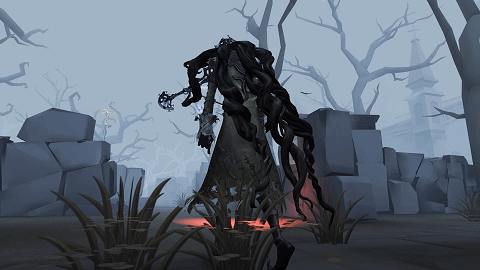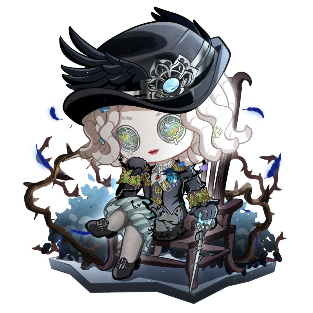 帽檐上的荆棘舒展着危险的尖刺,紫色的鸦羽自她身旁飘落,凝结着寒冰的手杖在挥舞时,总能带她优雅地逃离危机。