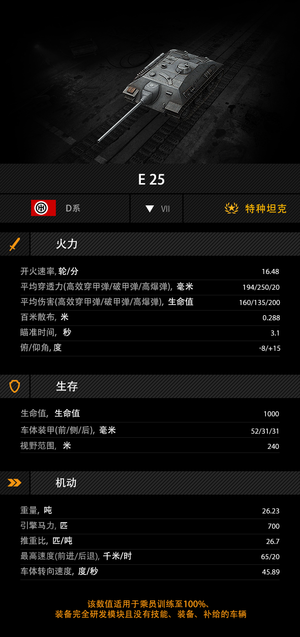 9月18日至10月2日,游戏商城内将会上架D系VII级特种坦克E 25!