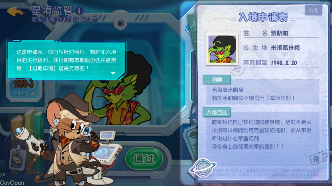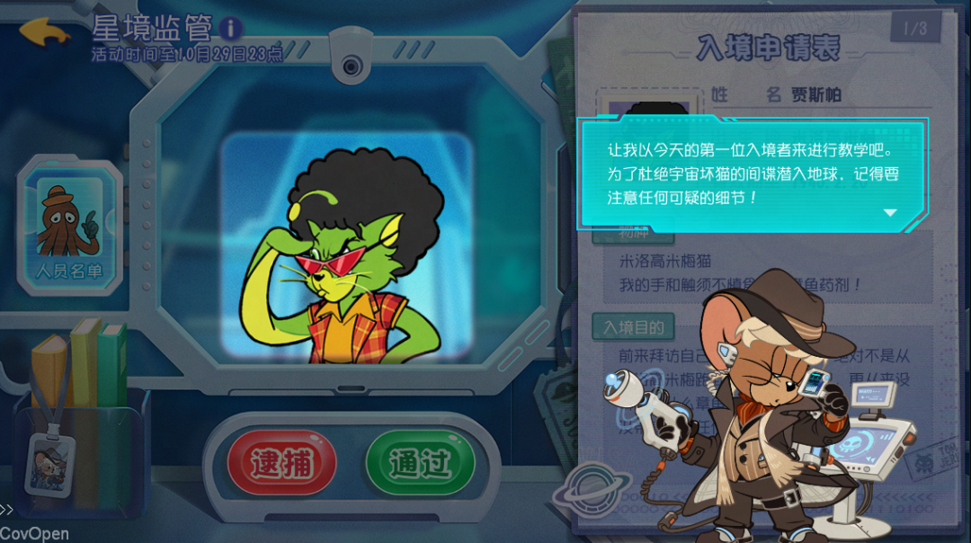 近来入境地球的生物种类愈发复杂,为严防宇宙坏猫派遣间谍潜入,侦探杰瑞·神秘探员特向大家发出协助请求——共同参与入境者监管工作,逮捕潜伏间谍、维护地球秩序!