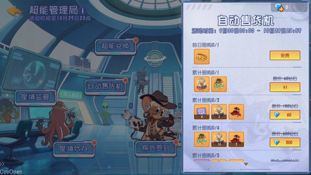 9月30日-10月29日,活动期间宇宙超鼠皮肤礼盒及其周边限时售卖!在专属折扣加持下,以更优惠的价格采购售货机内的物品吧!