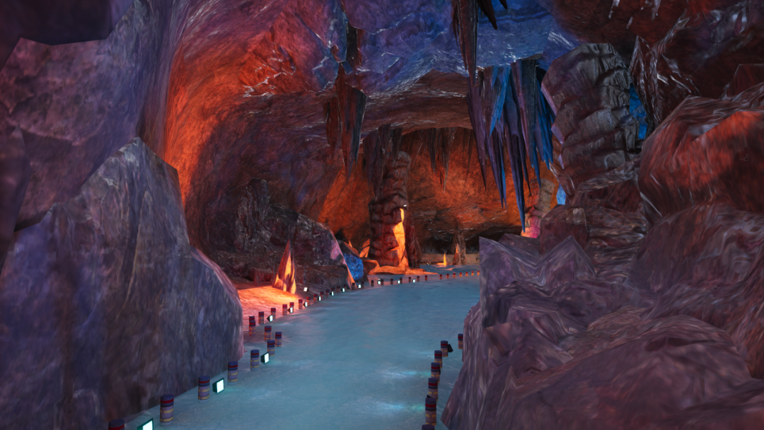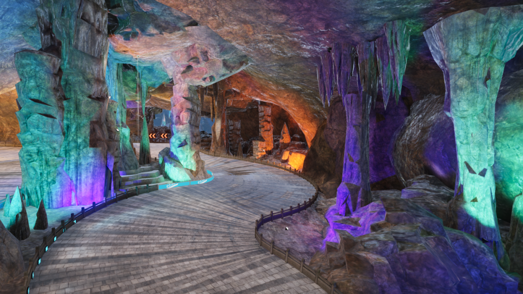 溶洞赛段是峰林碧波赛道最具神秘感的部分。洞内钟乳石、石笋、石柱等喀斯特地貌景观琳琅满目,赛道被五彩斑斓的灯光照亮,映射在形态各异的钟乳石和石笋上,呈现出如梦如幻的景象。在欣赏这些独特的地下奇观时,仿佛进入了一个与外界截然不同的神秘空间~