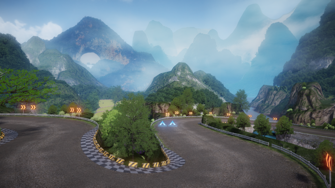 当车手们踏上峰林碧波赛道,首先映入眼帘的便是如诗如画的峰林景观,连绵起伏的山峰形态各异,赛道蜿蜒曲折,车手们将驾驶赛车近距离欣赏到这些大自然的杰作,雄起峻峭的月亮山同样在赛道中还原,随着车手们不断向前,就有机会欣赏到月亮山“阴晴圆缺”的视觉变化哦~
