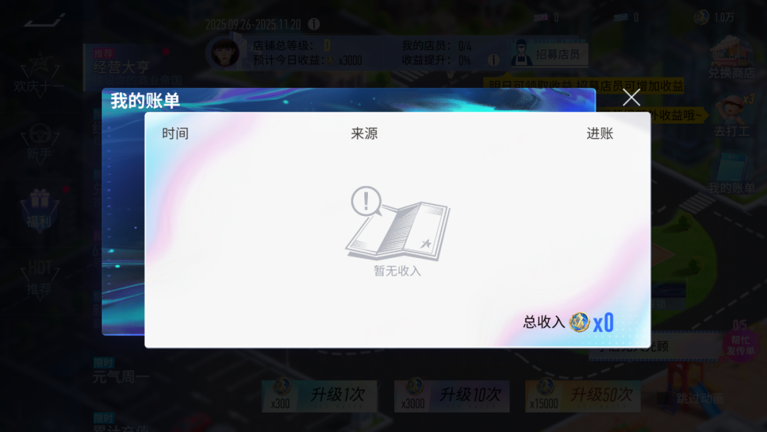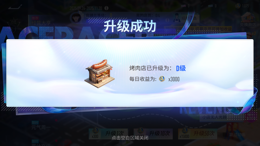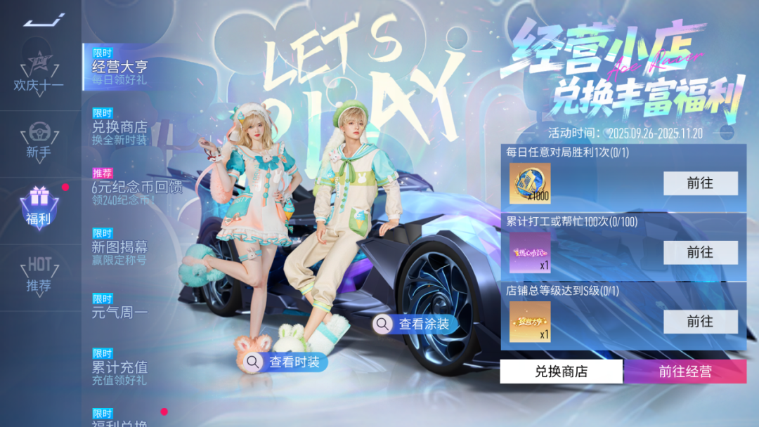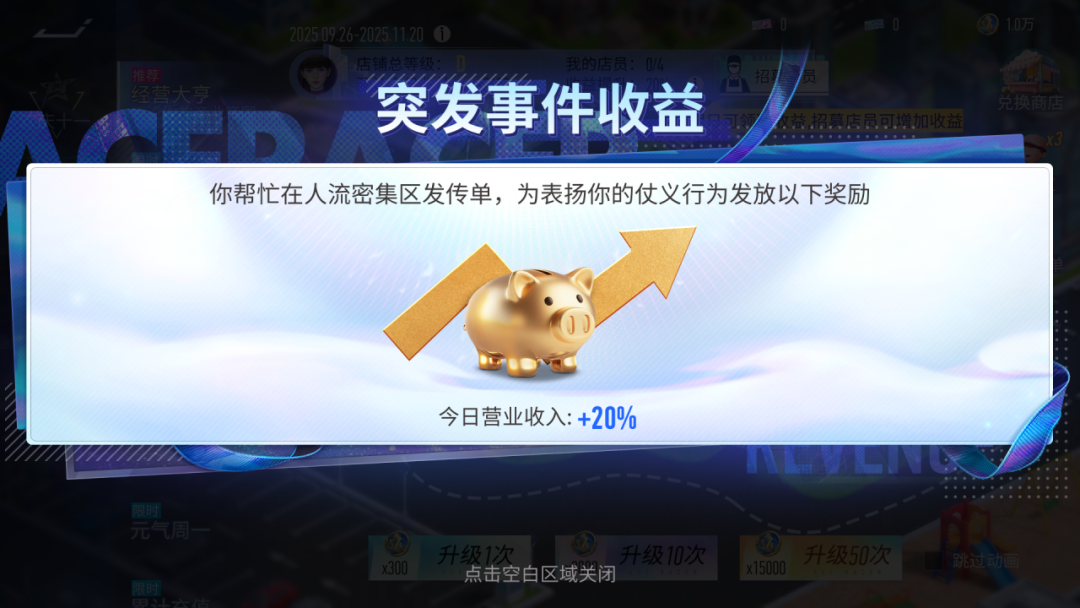 9月26日-11月20日,全新福利活动-经营大亨限时开启。在此,车手们需要经营多家店铺,通过升级店铺、招募店员/打工、完成突发事件获得更多收益。