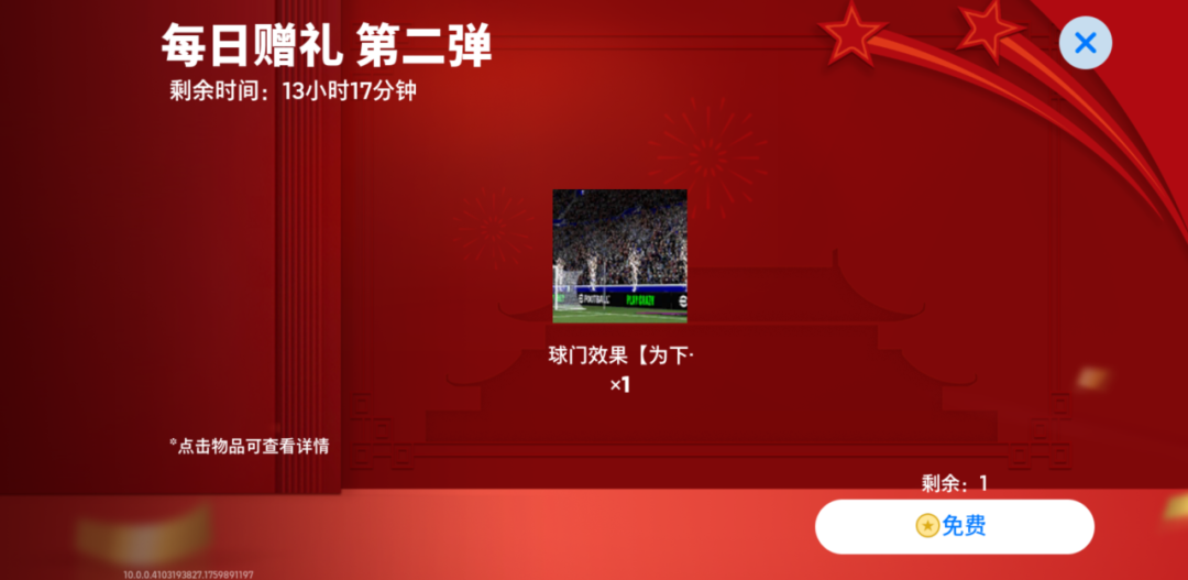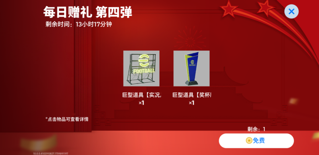 【双节同庆 每日赠礼&特惠】活动火热开启,满满的福利陪伴兄弟们欢度整个国庆假期!活动期间,玩家登录游戏即可免费领取【每日赠礼】,还可使用实况点购买超值【每日特惠】!福利逐渐解锁,所有奖励在解锁后直至活动结束前均可领取。
