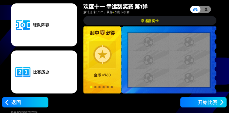 在【欢度十一 幸运刮奖赛】活动中,玩家完成比赛任务可获得刮卡机会。通过刮卡,可获得金币、高光定向券、球员技巧等奖励。