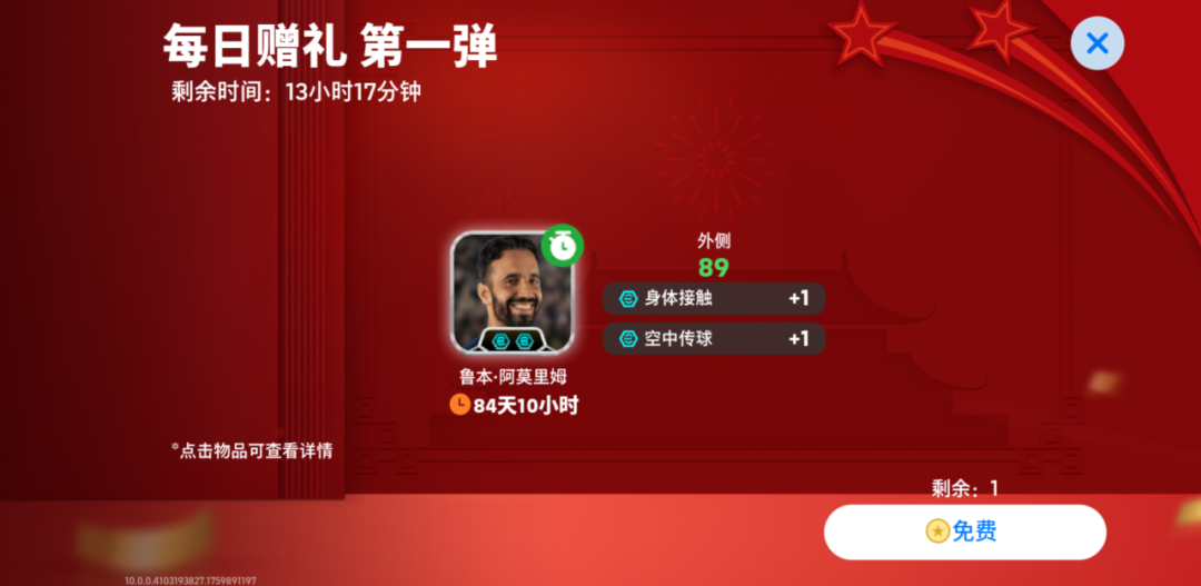 10月1日,玩家可以在【每日赠礼】中免费领取89评分租借教练【双增能鲁本·阿莫林】,还可以在【每日特惠】中消耗1388实况点购买【红耀全球 高光 特级经纪人】*20。