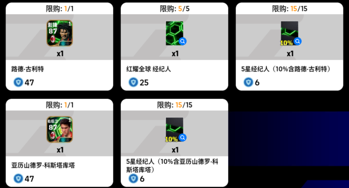 除此之外,玩家花费1388实况点购买【双节同庆 每日特惠】即可享受折扣,20抽【红耀全球 高光 特级经纪人】等你获取!