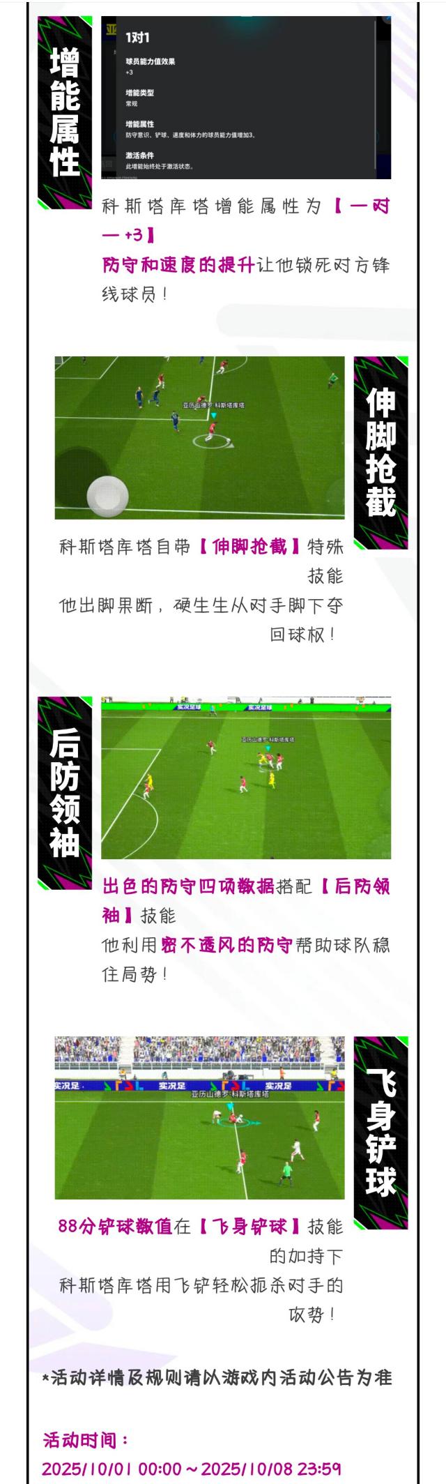 双增能史诗高光科斯塔库塔将通过【红耀全球 高光 特级经纪人(兑换保底)】首次登场!除此之外,你还将有机会获得双增能史诗高光古利特、阿尔贝蒂尼、伊涅斯塔、埃尔文,双增能梦幻精选莱奥、赫拉芬贝赫。想要补强球队的玩家们,千万不要错过此次活动!
