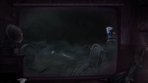 静谧的雾气笼罩着荒野中的坟地,夜宫的主人带来的并非死亡,而是满地温柔的月光,青色的鸟儿从盛放的花丛飞出,仿佛此地的灵魂在向他致意,