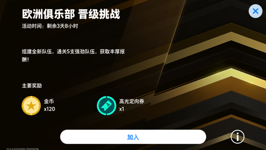 在【欧洲俱乐部 晋级挑战】期间,你将挑战层层关卡,每通过一关都可以强化自己的阵容,并可以赢取【金币】、【高光定向券】等道具奖励!