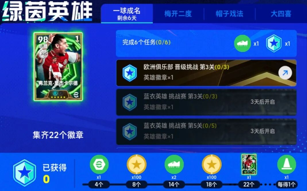 在【贾府黑塔 绿茵英雄】活动期间,玩家可以通过完成登录和进球任务及参与绿茵英雄相关的活动获得【英雄徽章】。
