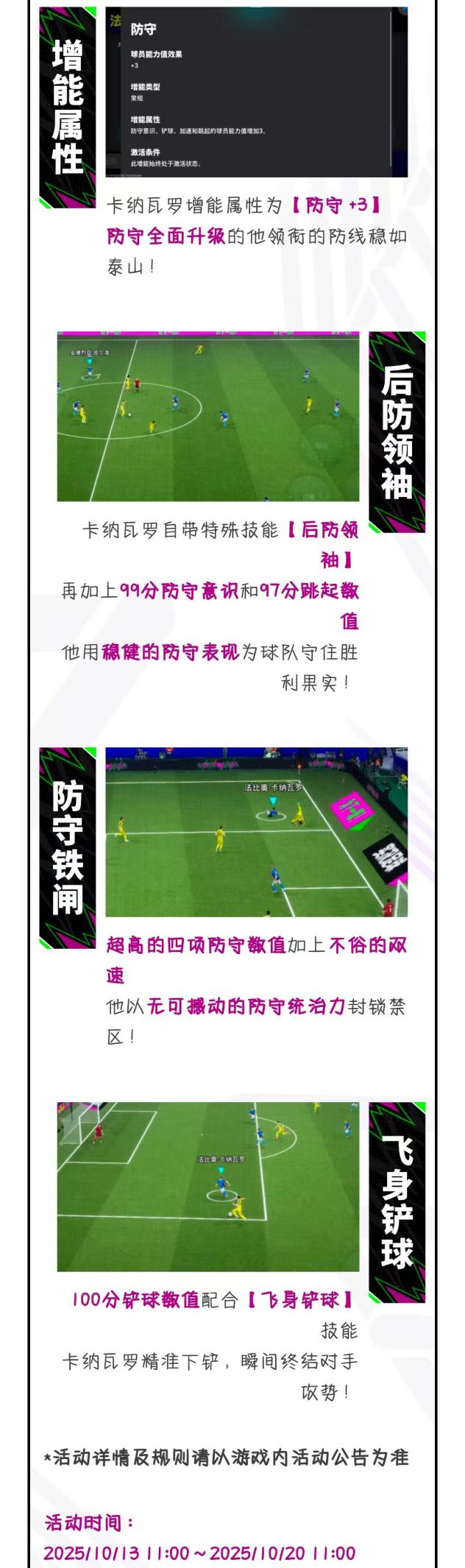 双增能史诗高光卡纳瓦罗将通过【国家队魂 高光 特级经纪人(累抽赠礼)】首次登场!除此之外,你还将有机会获得双增能史诗高光维埃拉、普斯卡什、济科、洛里斯、德尼尔森、朴智星。想要补强球队的玩家们,千万不要错过此次活动!