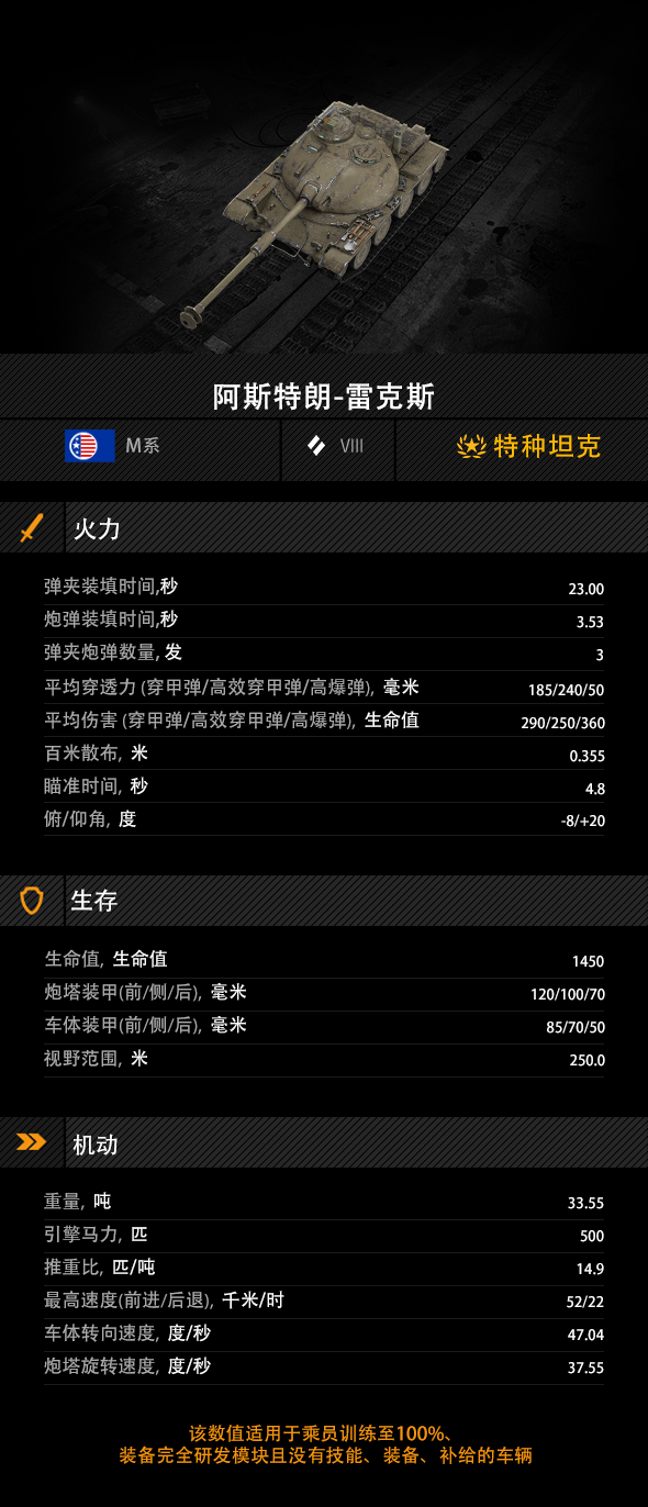 10月10日至11月4日游戏商城内将会上架M系VIII级特种坦克阿斯特朗-雷克斯!