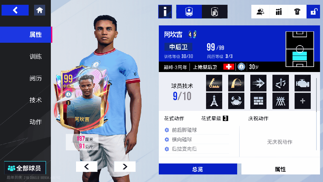 2022 年 9 月 1 日的转会窗口关闭前,1500 万欧元的报价从多特蒙德飞向曼彻斯特时,几乎没人预料到,这笔看似 “应急补位” 的签约,会成为蓝月军团赛季封神的关键伏笔。当阿坎吉带着德国赛场的硬朗风格踏入伊蒂哈德时,他身上还贴着 “轮换中卫” 的标签,直到五天后的欧冠赛场,他用一场近乎完美的首秀,撕碎了所有质疑。欧洲大赛小组赛,当阿坎吉站在右中卫位置上,像一块精准嵌入齿轮的零件。面对对手的细腻传切和盘带突破,他总能用恰到好处的卡位与抢断化解危机,瓜迪奥拉更是对他说道“有的球员需要我在战术板前讲十遍,你只看一眼就懂了。”这份 “战术天赋” 让阿坎吉在曼城的崛起速度远超预期。首个赛季,他就像不知疲倦的战士,在多个赛场上来回奔袭,48 次出场里,既有联赛争冠战中的铁血防守,也有杯赛关键战的临危救主。在瓜迪奥拉那套精密到毫厘的战术体系里,这位瑞士中卫用最短的时间,从 “补充选项” 变成了教练最放心的 “战术支点”。阿坎吉的曼城生涯,几乎是用冠军奖杯铺就的。两年多时间里他一步一个脚印,实现了俱乐部层面的 “大满贯”!如今再回望阿坎吉的曼城岁月, 伊蒂哈德的蓝色,早已融入他的血液,而他的故事,也成为了曼城王朝里,一段关于 “适配” 与 “坚守” 的动人篇章。