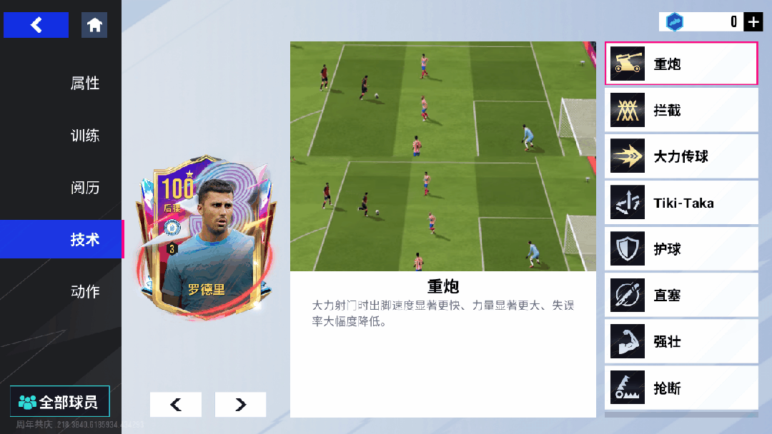 作为“中场统治级攻防转换器”,这张100潜力值的罗德里可无缝驾驭后腰、中前卫双核心位置。111拦截搭配金色【拦截】技术,他在中场如“铁闸”般覆盖大范围防守区域,对手进攻推进常被其强硬拦截瞬间瓦解;110短传、107长传的精准调度,加之金色【大力传球】技术对远距离传球球速与精准度的提升,使他成为球队攻防转换的“节拍器”,能瞬间梳理出致命进攻线路;金色【重炮】技术加持下,109射门力量、107远射让他的远射如“炮弹”般极具威胁,92射门也令他在禁区前沿具备得分能力。104速度、95加速的机动性令他在攻防转换时兼具覆盖与推进能力,109体力更支撑全场高效奔跑。