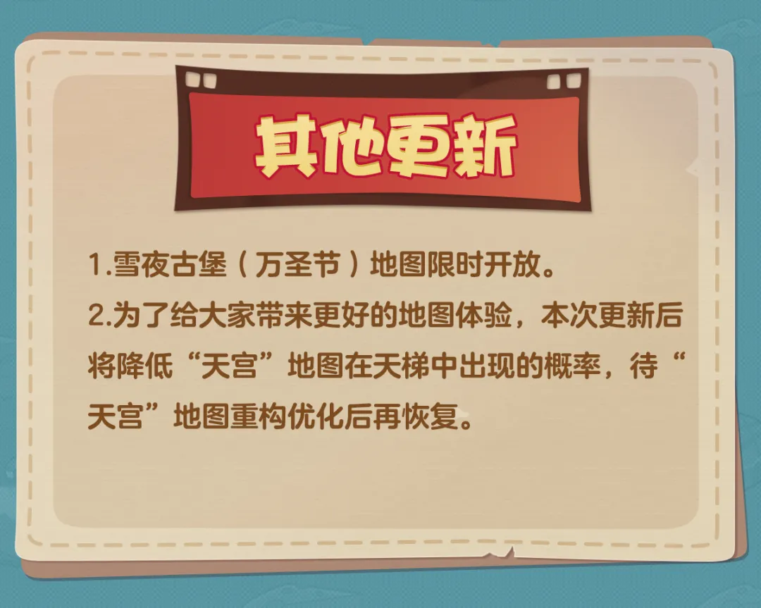 2.为了给大家带来更好的地图体验,本次更新后将降低“天宫”地图在天梯中出现的概率,待“天宫”地图重构优化后再恢复。