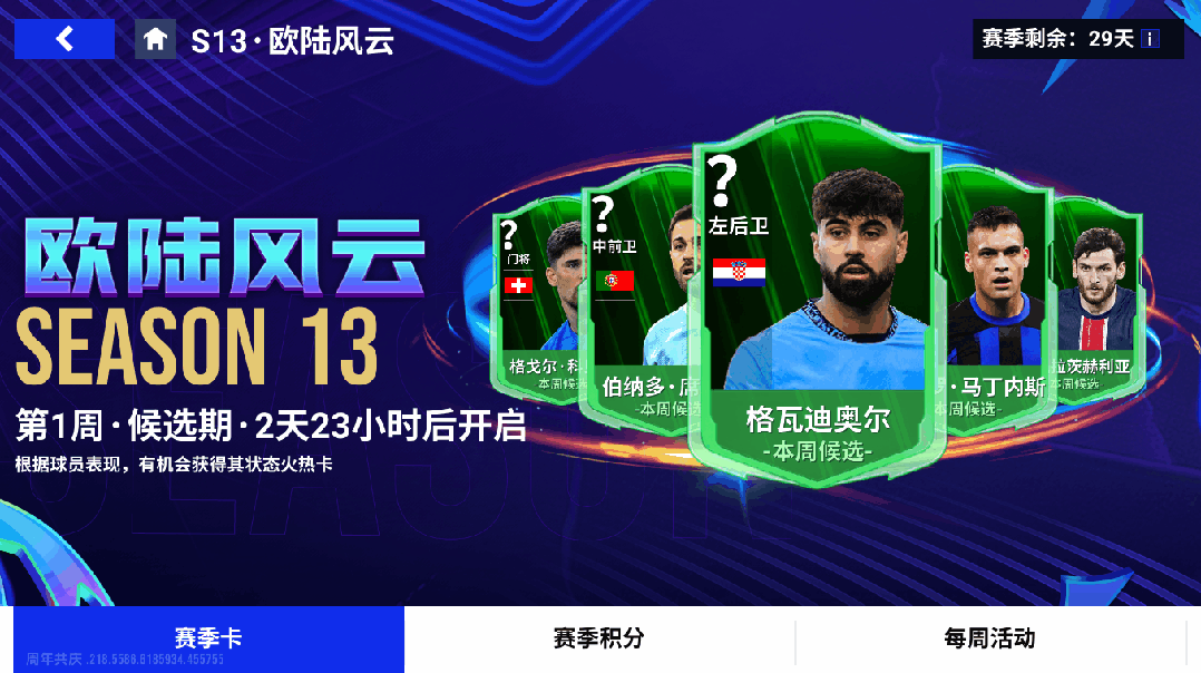 2025年11月1日起,S13赛季【欧陆风云】全新启动!