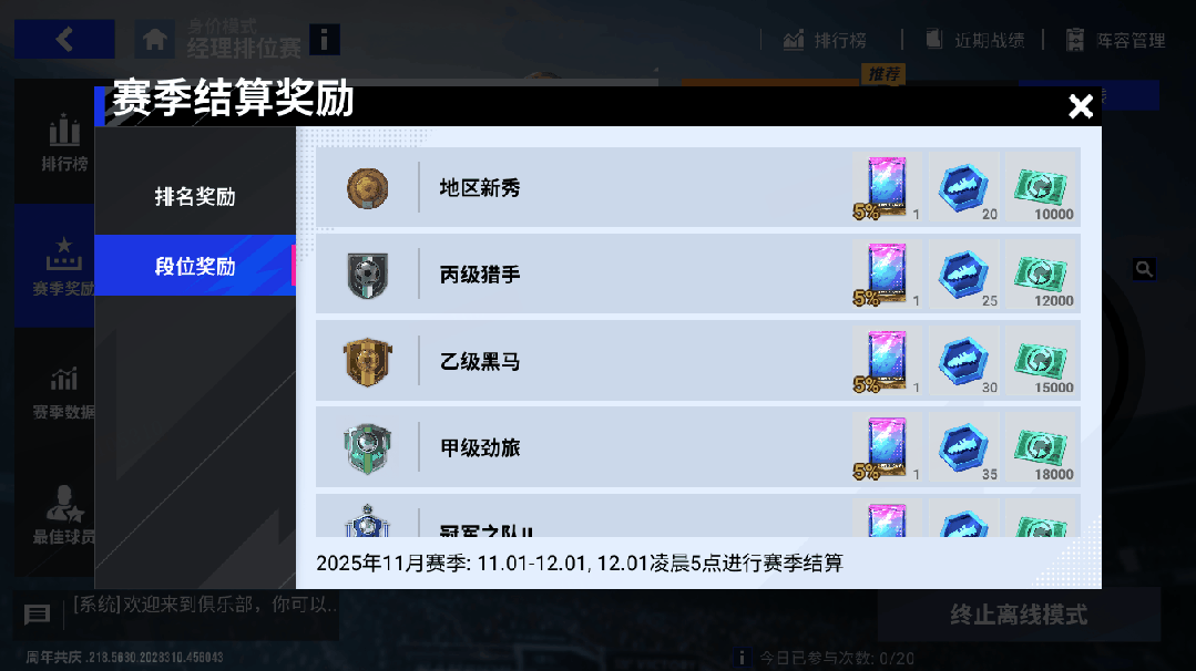 天梯赛、排位赛、经理排位赛、巅峰赛奖励更新,「蓝券」、「精选球员包」以及「巅峰球员包」等你来领!