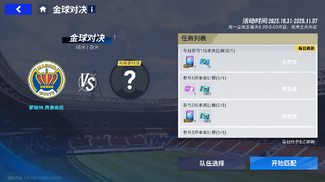 新一期金球对决将于10月31日开启,完成挑战,获得丰富的奖励!