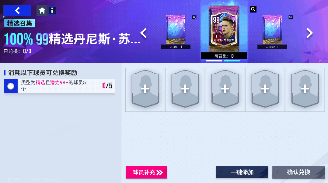 【99精选丹尼斯·苏亚雷斯】阵容召集挑战将于10月31日11时至11月7日11时开启,活动期间累计可进行3次召集挑战,按条件使用指定球员进行召集必得【99精选丹尼斯·苏亚雷斯】。