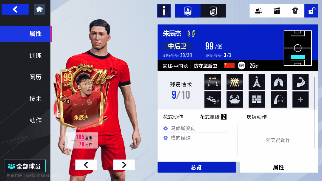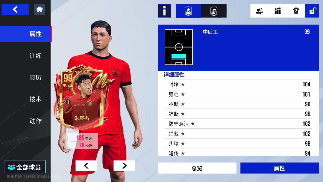 作为“中国新生代防守铁卫”,99潜力值的朱辰杰在中后卫位置将“铁血拦截+协同防守”的特质拉满!104封堵、102拦截搭配金色【拦截】【协防】技术,再加上99抢断、99铲断、102防守意识,他在防线如“铁闸”般密不透风,拦截与协防效率拉满,对手进攻推进能被他强硬断球轻松瓦解;101强壮搭配【强壮】技术,对抗中优势明显,101速度也令他回追与覆盖极具保障;【长传】【跟防】【封堵】技术加持下,防守端稳健且出球有章。出色的拦截硬度、协同防守意识与对抗优势,让他宛如“后防新锐屏障”,筑牢球队防线的“坚固壁垒”!
