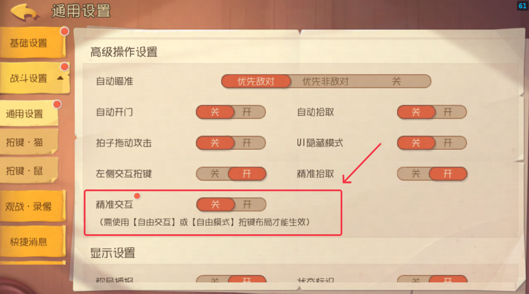 精准交互功能更新,前往战斗设置-通用设置中开启(记得使用【自由交互】或【自由模式】按键布局),开启后可以同时显示多个交互内容,再也不用担心发生场景物品堆叠在一起导致无法使用的情况啦!