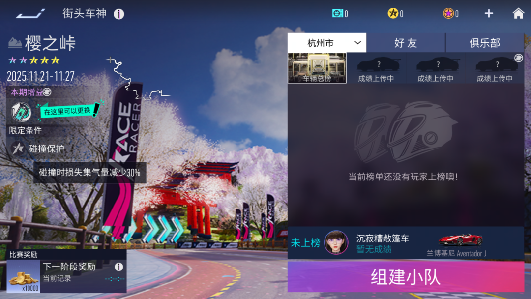 街头车神『峡谷纵横』将于2025年11月20日23:59结束,街头车神『樱之峠』将于2025年11月21日8:00开启。本期街头车神增益为充能装置、加速装置,特殊规则-碰撞保护:碰撞时损失的集气量减少30%。