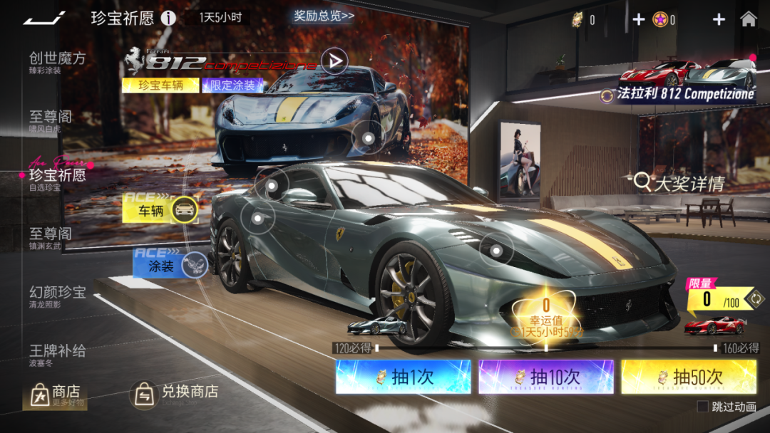 西理温馨提示:本期【珍宝祈愿】活动即将结束当期幸运值将于2025年11月20日23:59清空,各位赛车手快快抓紧最后机会获取超绝珍宝!(珍宝祈愿积分将不会清空可用于下期珍宝祈愿活动兑换)