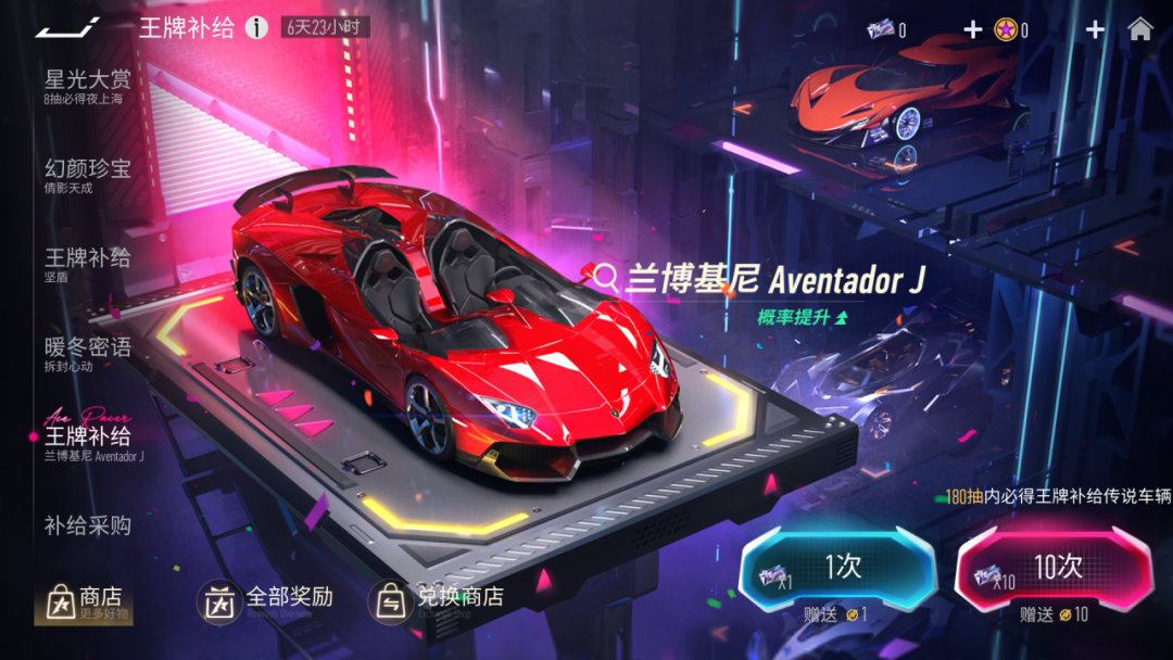 11月21日~12月4日,王牌补给将开启返场活动!传说车辆『兰博基尼 Aventador J』限时概率提升66%!