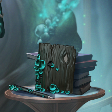 手中的藏书十分古旧,木质的封面难以抵抗霉菌的侵蚀,这些绿色的菌落将逐渐覆盖书中的字句,直到再也无法读出其中的故事。