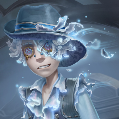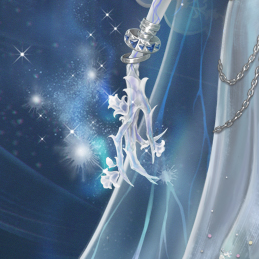 繁复的头饰装点着银白色的卷发,垂落的链条遮盖住左侧的面颊,头顶洁白的水晶兰晶莹剔透,吸引着幽蓝的蝴蝶落在她的肩头。