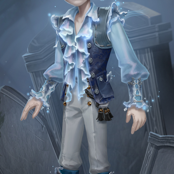 浅蓝的衬衫外罩深色马甲,领口层叠的花边如同肆意蔓生的苔藓,自然而又随性。