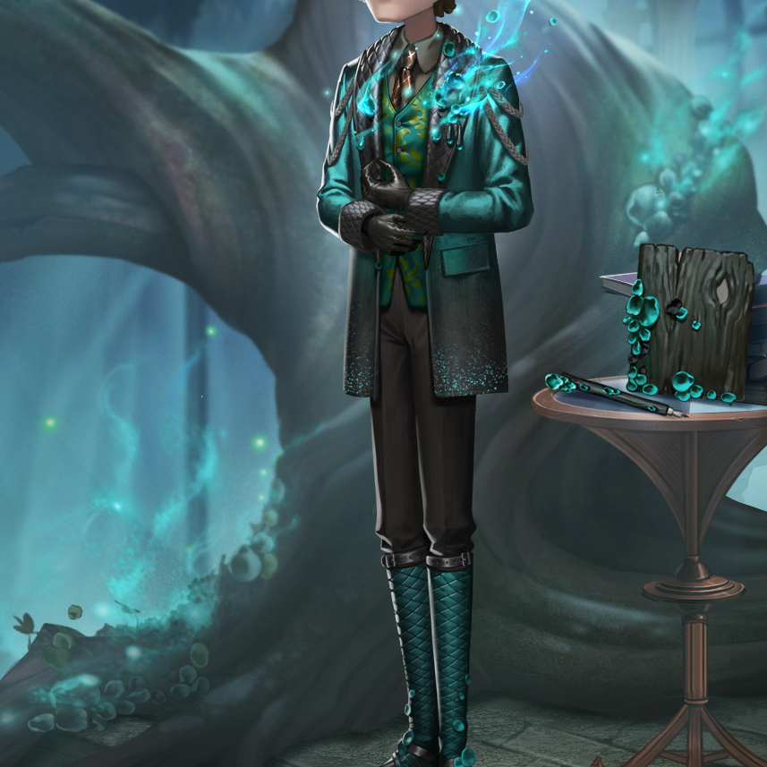 宽松的绒面西装反射着缎光,领口的菌落仍在蔓延,新生的孢子好似绿色的烟雾,在沉默的空气中逐渐散去。