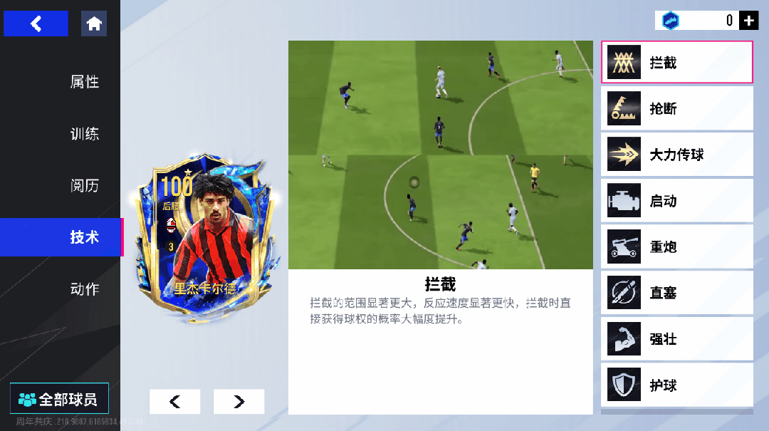 这张巅峰里杰卡尔德有着制霸中场的绝对实力。金色【拦截】技术和金色【抢断】技术宛如他的左膀右臂,再搭配上【启动】【强壮】技术和全部103+的防守数据,让里杰卡尔德瞬间化身中场路障,叫停对手的一切行动。不仅如此,他在进攻端的威慑力也让对手难以忽视,本就以出色脚下技术闻名的他,不仅短传达到108,还自带金色【大力传球】技术和【直塞】技术,在中场随时都能送出一记打破场上平衡的手术刀直塞!而106的射门力量更是恐怖,凭借【护球】【重炮】技术的加持,里杰卡尔德能在扛住对手干扰的同时稳稳转身打出一记世界波,将对手彻底击溃