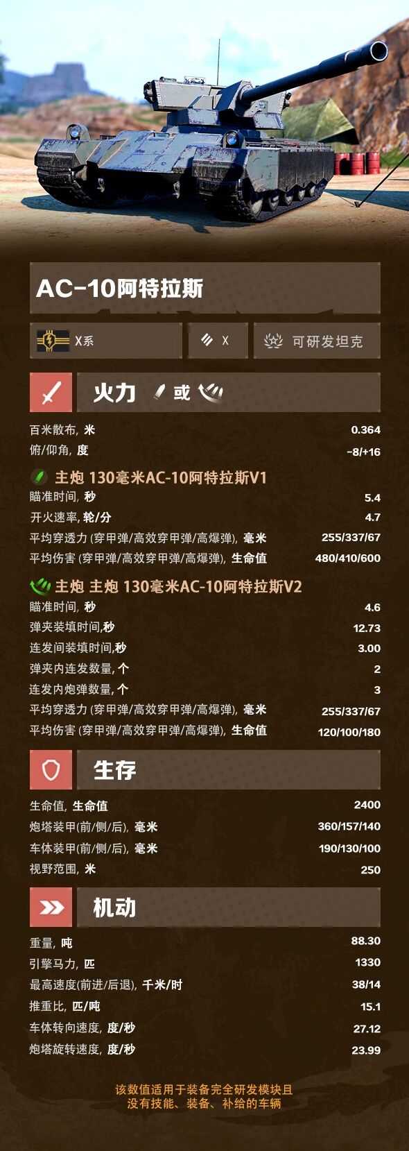 这条科技线中的坦克均为原创设计,我们在构思时借鉴了多种实战装备的硬派风格与卓越性能。AC系列坦克不仅装甲厚重,其战术定位也极为明确:在低级比赛适合采用简单高效的一线推进打法;随着等级提升,则可依托坚固炮塔转变为可靠的防御支点。