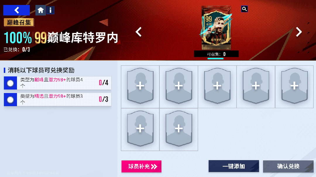 【99巅峰库特罗内】阵容召集挑战将于12月5日11时至12月19日11时开启,活动期间累计可进行3次召集挑战,按条件使用指定球员进行召集必得【99巅峰库特罗内】。