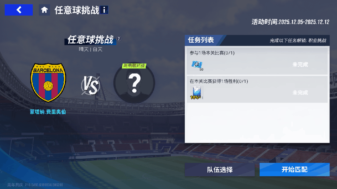 新一期任意球挑战将于12月5日开启,完成挑战,获得丰富的奖励!