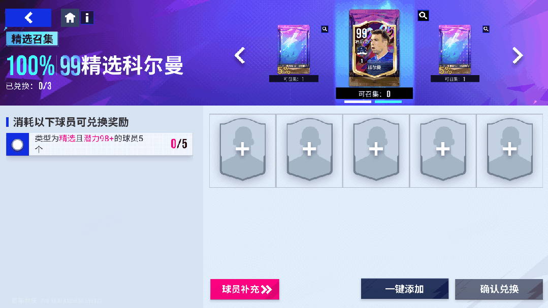 【99精选科尔曼】阵容召集挑战将于12月12日11时至12月19日11时开启,活动期间累计可进行3次召集挑战,按条件使用指定球员进行召集必得【99精选科尔曼】。