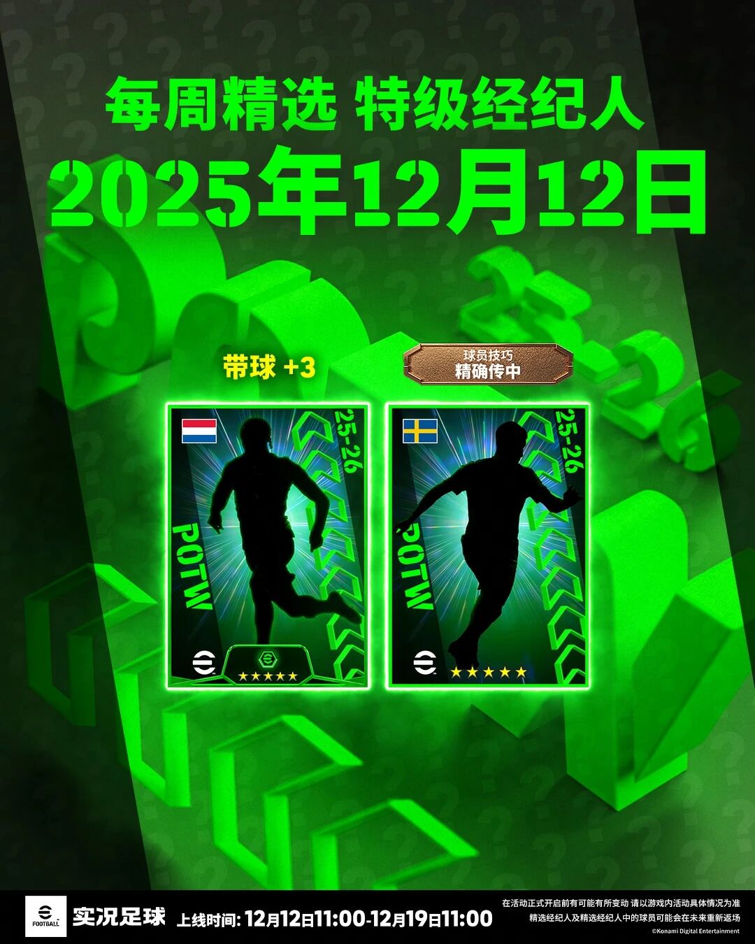【每周精选 特级经纪人(12.12~12.19)】即将上线,你将有机会获得本周在赛场表现优异的精选球员。