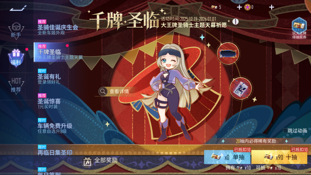 文能上桌打牌,武能下场飙车,圣骑士车姬奖励加码,对决玩法全面升级,牌神之对局即将再度开启!12月19日起『大王牌2.0』,邀请所有车手前来挑战!在特定模式中,圣骑士车姬将化作神器帮助车手闯关,还能触发彩蛋剧情哦~