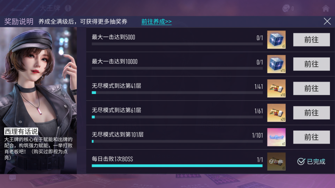 除此之外,本次大王牌2.0活动同样准备了多种挑战奖励,达成对应条件即可领取限时称号、大王牌抽奖券、重铸因子等丰厚好礼,边打牌边变富就是这么简单~