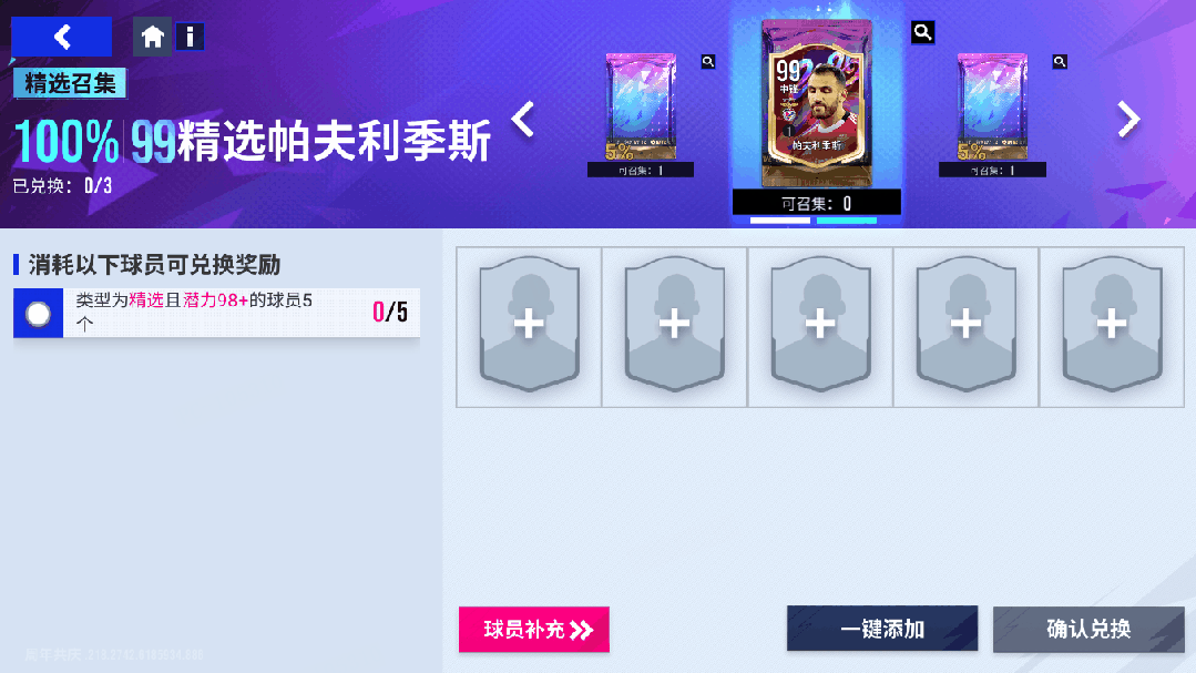 【99精选帕夫利季斯】阵容召集挑战将于2025年12月23日11时至2025年12月26日11时开启,活动期间累计可进行3次召集挑战,按条件使用指定球员进行召集必得【99精选帕夫利季斯】。