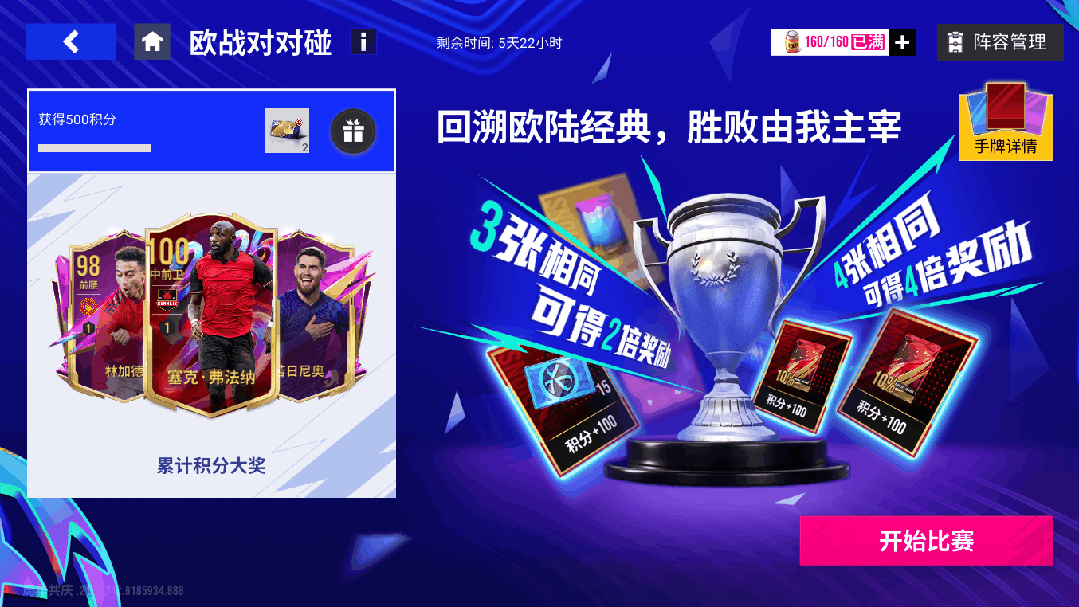 【欧战对对碰】12月19日11时-12月26日11时开启,重回当年的欧洲决战,书写属于自己的结局。完成比赛任务可以获得选牌机会,选择你想要的奖励。
