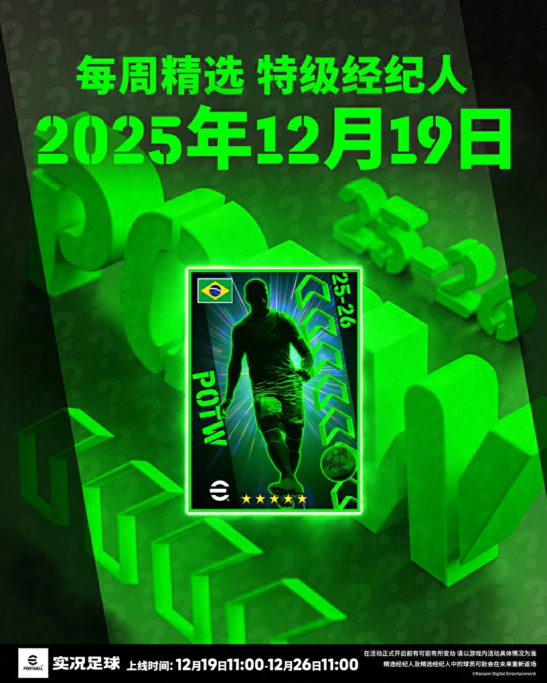 【每周精选 特级经纪人(12.19~12.26)】即将上线,你将有机会获得本周在赛场表现优异的精选球员。