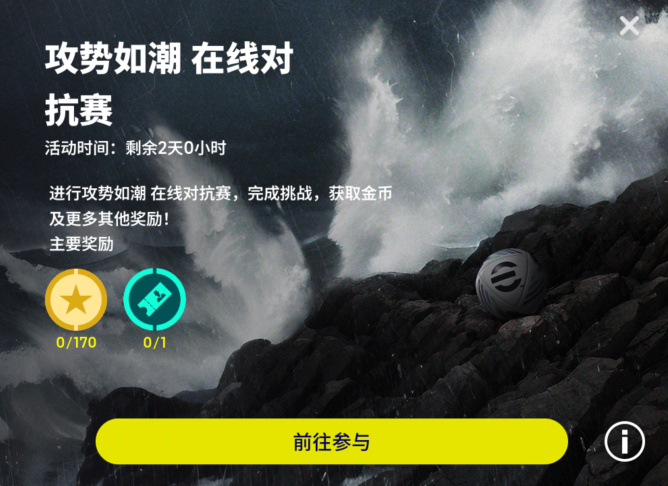 参与并完成【攻势如潮 在线对抗赛】,你将赢得【金币】和【高光定向券】作为参赛奖励。快来参加这场激烈的对抗吧!