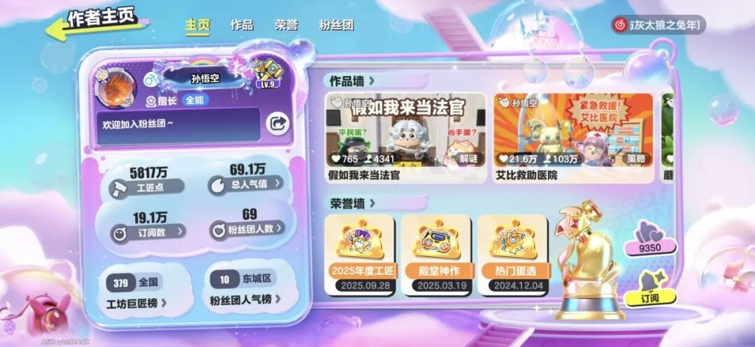 精神领域则多了一份创作的成就感,当看到自己设计的地图被玩家游玩、点赞、评论甚至二创传播到社交平台时,那种被认可的满足感是其他事很难替代的,也让我对一些事物的认识变得更加立体,比如去景点游玩时,我会下意识观察现实场景的构建与搭配,如果以此衍生出一个游戏玩法,我会怎么用蛋码去实现它。