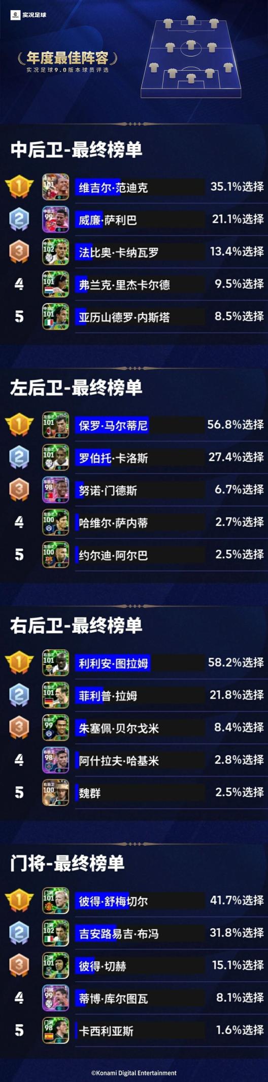 明日,由玩家投票选出的最佳后场球员双增能史诗高光马尔蒂尼、图拉姆、舒梅切尔,双增能决胜高光范迪克,双增能梦幻精选萨利巴将通过【年度最佳阵容 最佳后场 特惠礼包】重返实况赛场!除此之外,你还可以获得一众强力精选球员!喜欢他们的玩家,千万不要错过此次活动