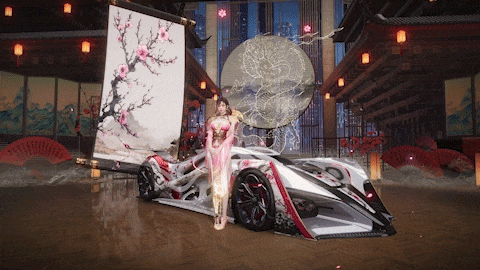 当车辆开启大招后,一卷水墨梅图正从赛场间舒展,冷白车身覆盖上未融的积雪,迸发出粉红色的光芒,梅瓣顺着风势飞扬,墨色随尾流晕开,恰似寒梅落雪时,碎瓣粘在了风的尾梢。大招结束时,被冻结的敌方车辆标签还将呈现出独特的效果~