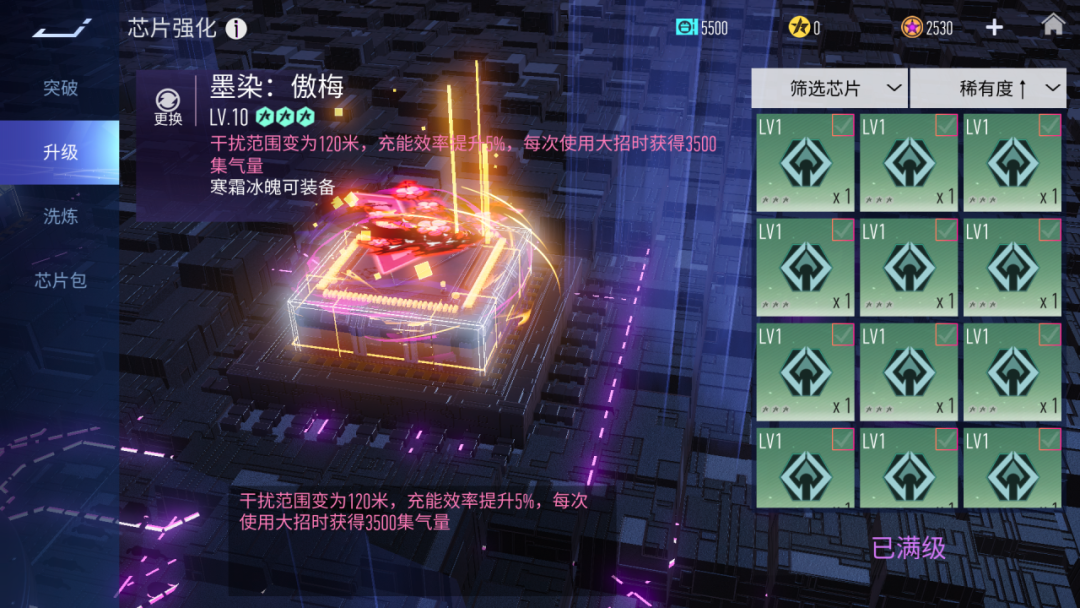 当车手们获取当期至尊涂装后,即可免费领取对应至尊芯片*4。本期专属芯片为-『墨染:傲梅』,可为车辆-寒霜冰魄装备,满级效果:干扰范围变为120米,充能效率提升5%,每次使用大招时获得3500集气量。