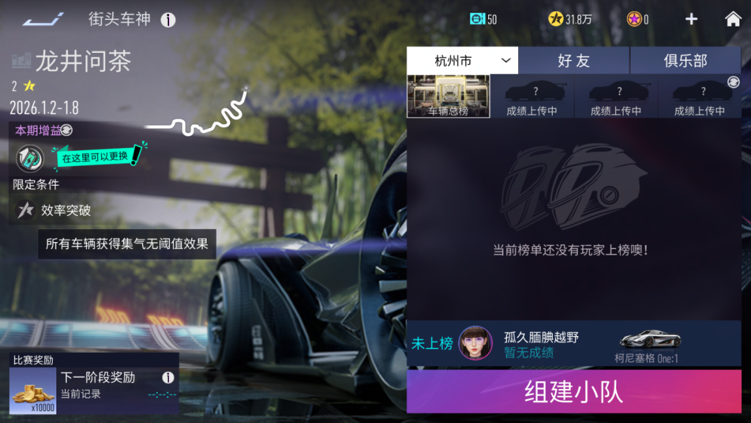 街头车神『丰饶牧场』将于2026年1月1日23:59结束,街头车神『龙井问茶』将于2026年1月2日8:00开启。本期街头车神增益为充能装置、加速装置,特殊规则-效率突破:所有车辆获得集气无阈值效果。